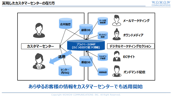 デジタルマーケティングによる情報で「顧客のボリューム、行動結果」を把握し、コールセンターで「行動の背景」を探っていく。これにより、WOWOWは顧客理解を進められるようになった。