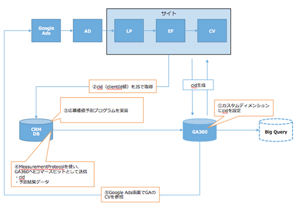 オフラインデータをマーケティング施策に取り込む試みのひとつとして、売上発生フラグを活用した広告配信がある。これはGoogleアナリティクスの機能の1つであるMeasurement Protocolを活用した施策で、現在一事業部でテスト稼働中だという。
