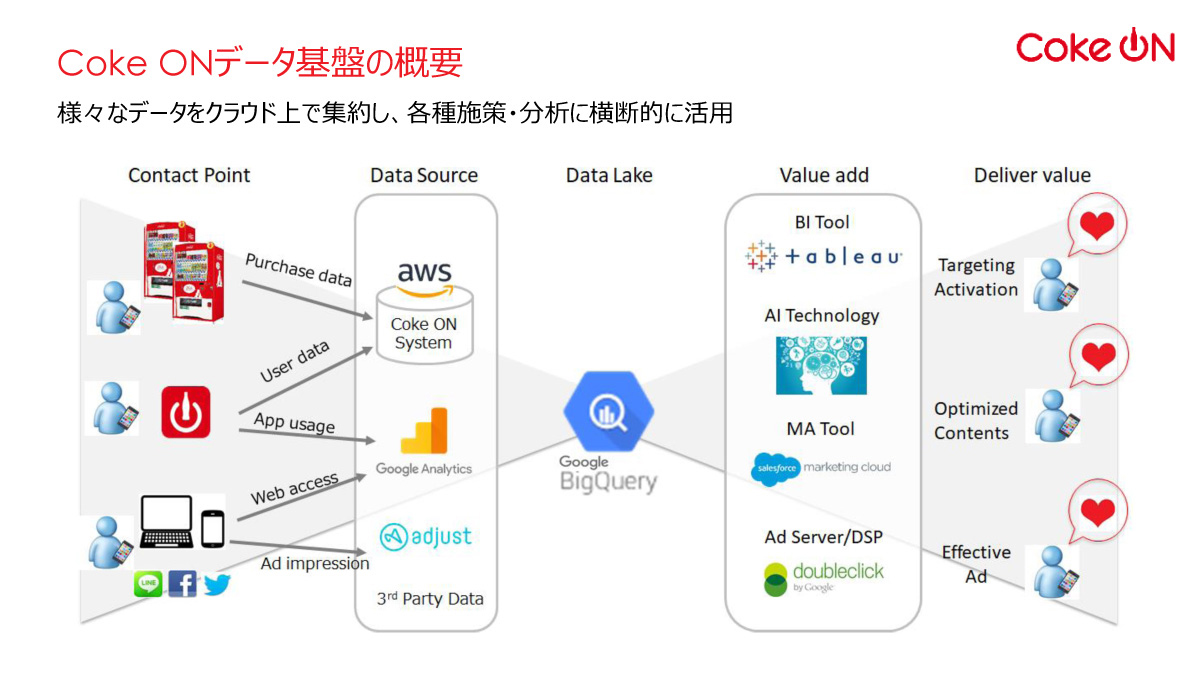 なので「Coke ON」と自販機も、お客様のことをより深く知り、それに合ったサービスを提案できるようにする。これを重要な取り組みとし、洗練させていく構えです。具体的には、デジタル施策で様々な情報を収集し、それをやはりテクノロジーで正しく解釈することで、よりお客様に寄り添った施策を提供していく。