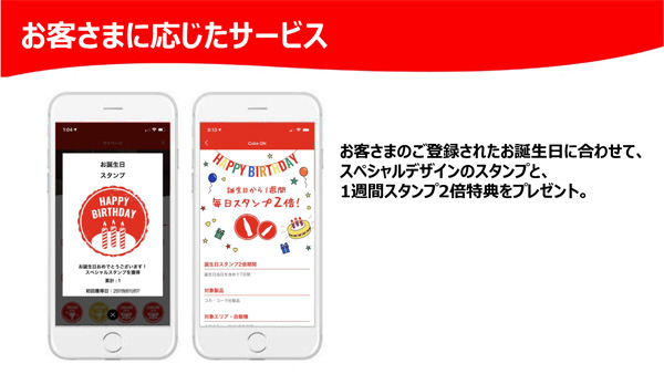 アプリを持つことはメンバーシップカードを持つことと同じなので、過去の購入履歴からおすすめ商品やコンテンツを提案することができるようになっています。また、自分の誕生日を登録したユーザーの方には、誕生日に特別なスタンプをプレゼントしたり、スタンプ2倍のプレゼントなどを提供し、ささやかな楽しみや喜びに貢献しています。