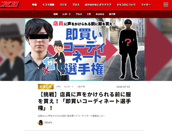 5位の花王「エッセンシャル」はWebメディア「オモコロ編集部」による記事広告「即買いコーディネート選手権」がエンゲージメントされました。店員に声をかけられる前に服を買ってコーディネートするというシンプルな企画ですが、「店員に声をかけられることへの苦手意識」に対する共感と、笑いを呼んで大きなエンゲージメントを獲得しています。比例してPVも伸びていると考えられます。