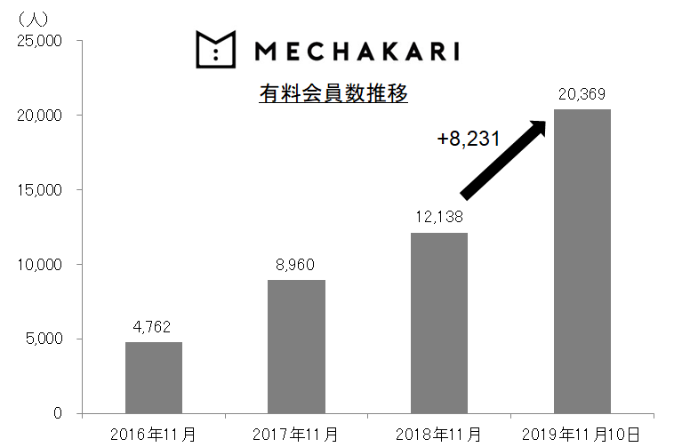 元々、期初に「2019年度末(2020年1月末)までに、有料会員数を2万人にする」という目標を立てていたのですが、キャンペーン開始以降、有料会員数は約8,000人増加し、目標を約3ヵ月前倒す形で、2万人を突破しました。