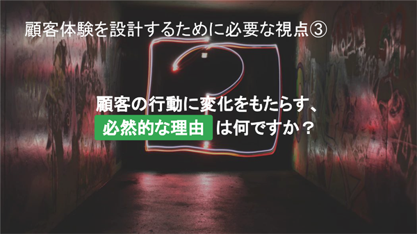 最後の視点は、「顧客の行動に変化をもたらす、必然的な理由は何か?」という点だ。