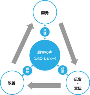 事実、今の時流にフィットした新しいECを目指す企業は、UGCや顧客の声を広告宣伝だけでなく、商品企画・開発のアイデアや商品改善のポイントなどにも活かし、マーケティングサイクルを細かく早く回していくことで、成果を増幅させていくアプローチに、続々とチャレンジし始めています。
