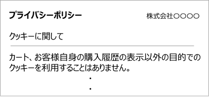 たくさんの企業のプラポリを読んでいると、「あれ?これはいいのか?」と思うプラポリに遭遇しました。あるECサイトを運営している企業のプラポリには、クッキーの取り扱い方針に「カート、お客様自身の購入履歴の表示以外の目的でのクッキーを利用しない」と明記していました。