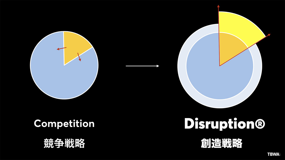 こうしたサービスのDisruptionが実現するのは、市場を「競争する場所」から「創造する対象」へと捉え直すことです。既存の顧客を奪い合うのではなく、新しい価値観を提示することでこれまでになかった新しい市場の創造を目指します。