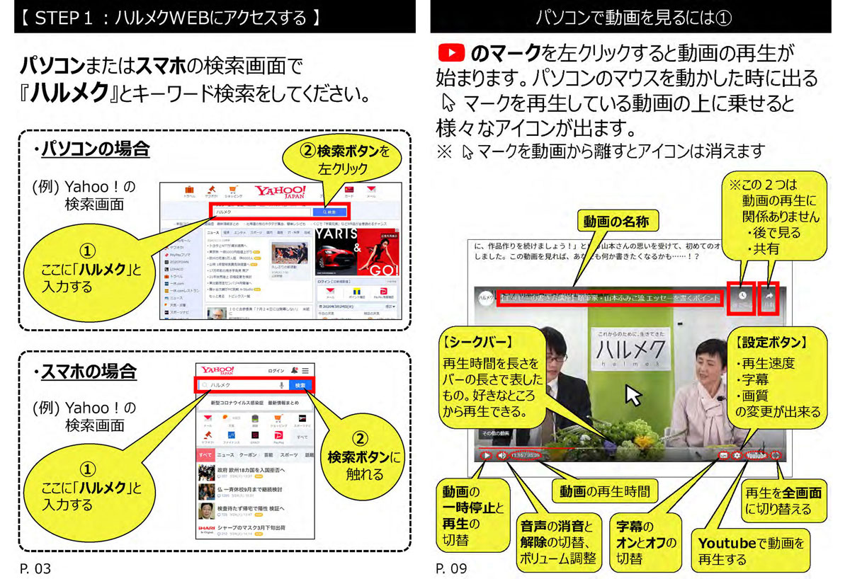 ハルメクが作成した動画再生マニュアル(タップで画像拡大)