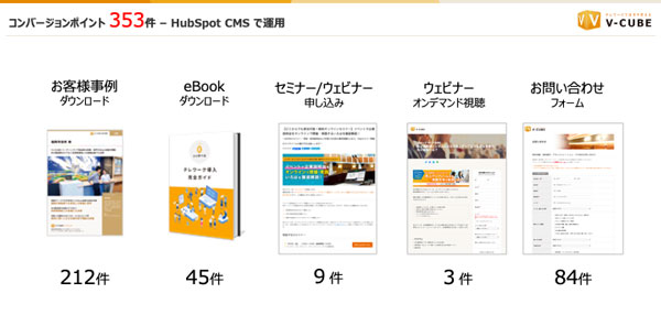 続いてのテーマは、「BtoBマーケティングの組織」だ。ライトニングトークで話されたとおり、佐藤氏はマーケティングと営業の組織を整えてきた。そして自社内には、お客様事例コンテンツを制作する編集チームも置いている。制作した事例は、オウンドメディアに掲載するだけでなく、ダウンロード用のホワイトペーパーに加工したり、外部メディアの広告タイアップに利用したりと、様々なポイントに展開する。事例の外部メディア掲載は、獲得効率が高いことも特徴。同社のコンバージョンポイント353件のうち、実に6割がお客様事例に起因するものだという。ホワイトペーパーをダウンロードする際にメールアドレスを取得するため、その後も類似や業種別の事例を紹介したメールマガジンでナーチャリングを行い、リードへと繋げている。
