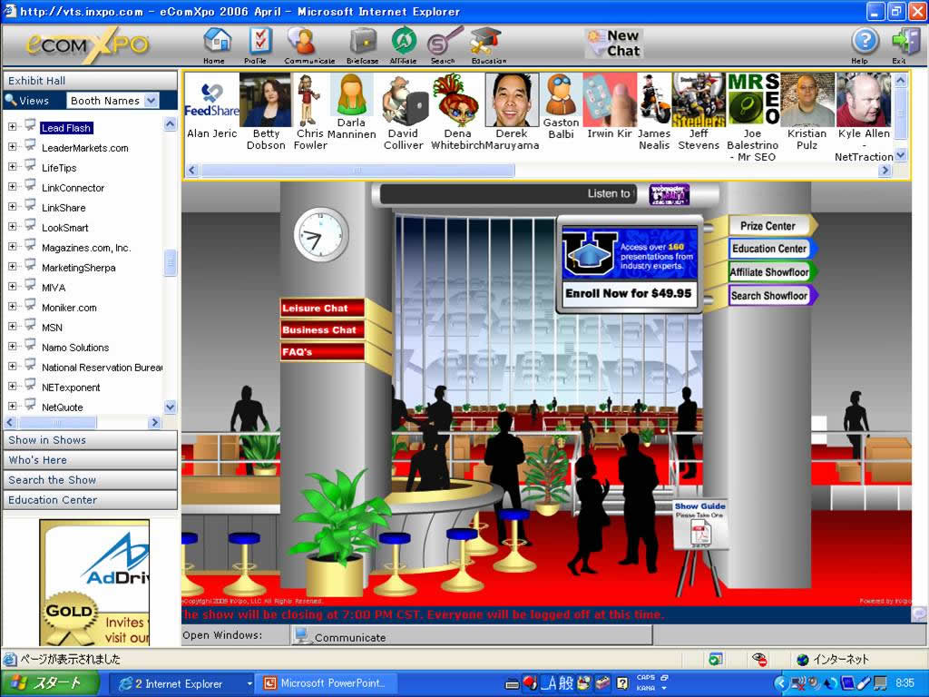 ここまで紹介してきました、今回4月に開催された3日間のセミナー期間中、ブースへの延べ訪問者数は262,285人(1ブースあたり約1100人)、インスタントメッセンジャーが行われた回数は8,945回、Eメールの送信数は5,540通あったと報告されています。これらの統計データからみても、かなり活発なコミュニケーションが行われていたことが理解できます。
