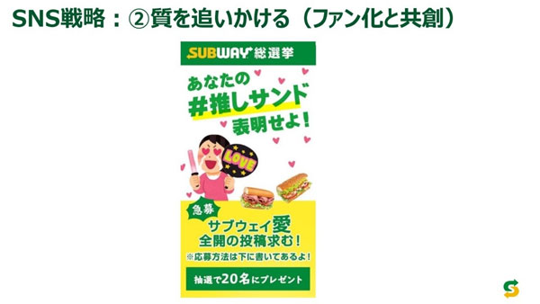 辻本:SNS戦略その2「質を追いかける」に関しては、今年3月にアジャイルメディア・ネットワークさんと一緒に行ったファンの方と共創していく「#推しサンド キャンペーン」があります。