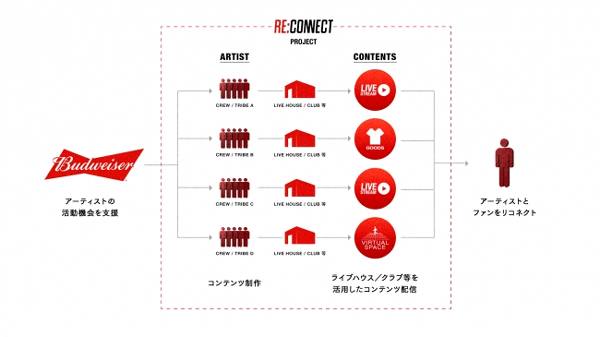 島田:我々が始めたのは「RE:CONNECT」という取り組みです。2019年から様々なカルチャーと関わる中で、新型コロナウイルスが流行してからのカルチャーシーンが非常に苦しい状況にあることを聞いていました。また、我々も2020年春に実施予定だったイベントのBUDXを中止しなければならない状況でした。