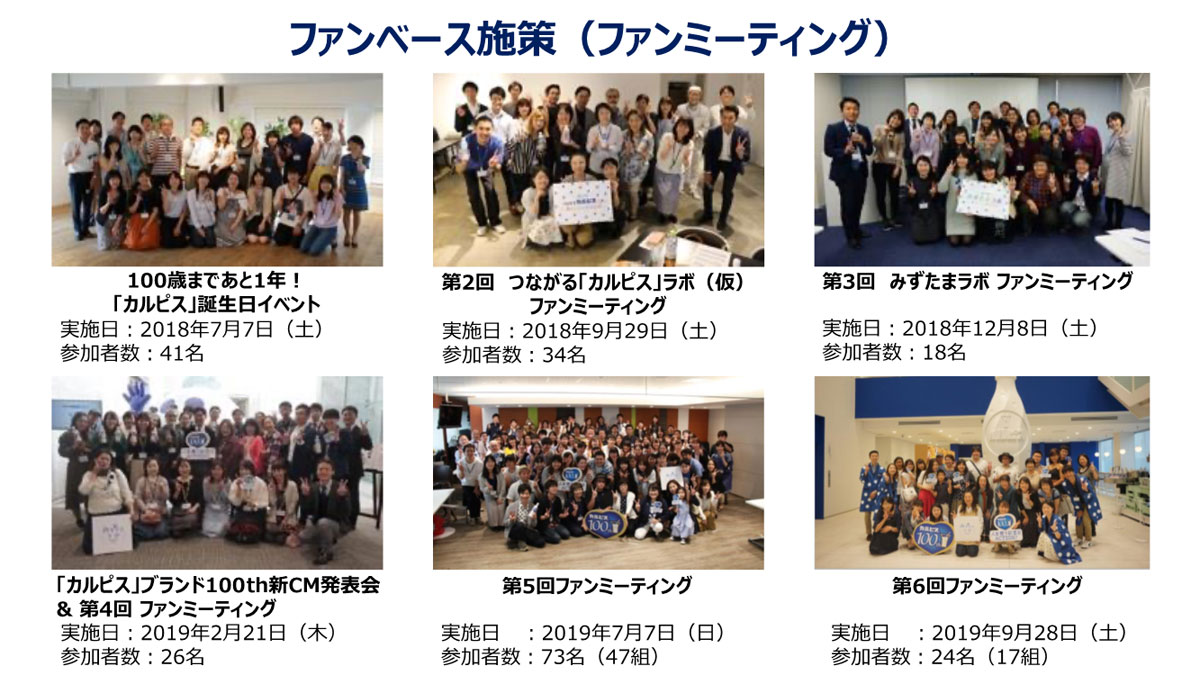 2018年7月から、毎回20〜30人程度のファンの方をお呼びして、4回のファンミーティングを行ってきました。そして、5回目には2019年7月7日に、73名(47組)の方に社内に集まっていただき、100周年をファンミーティングで迎えることができました。CMの発表会などにもファンの皆さんをお呼びしたり、会社の食堂にもお呼びしたりと、手作り感満載でしたが、楽しんでいただけることができたと思います。