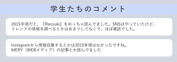 長田:2015年~2016年頃はまだ雑誌が主な情報収入源の子も多かったですが、Instagramでハッシュタグ検索ができるようになったことも影響していそうですね。