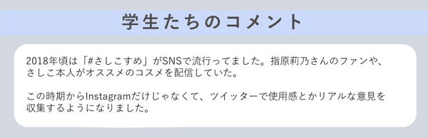 崔:SNSでの情報検索のスキルは本当に高くなっていますね。2015年に既にTwitterで検索していた子がいましたが、当時より今のほうがSNSとの接触時間が断然多く、情報収集の量もかなり増えています。