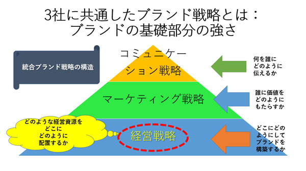 「3社は、『どこにどのようなブランドを構築するか』というブランド戦略の基礎部分、経営者視点で『影響を受けにくい地位・関係』を築いてきた」と田中氏は説明する。