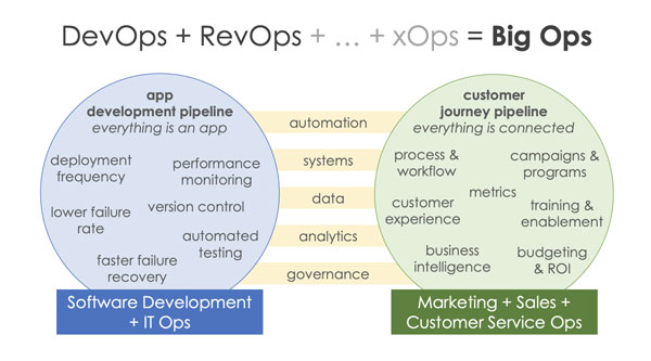 また、マーケティングテクノロジー企業が高度な分析を行うためには、特にこの両軸を行う必要があり、ソフトウェア開発やITなどのオペレーションチームと、マーケティング、セールスやカスタマーサービスに関わるオペレーションが同時にビックデータ同士の関係性の解釈し、自動化することが鍵になる。