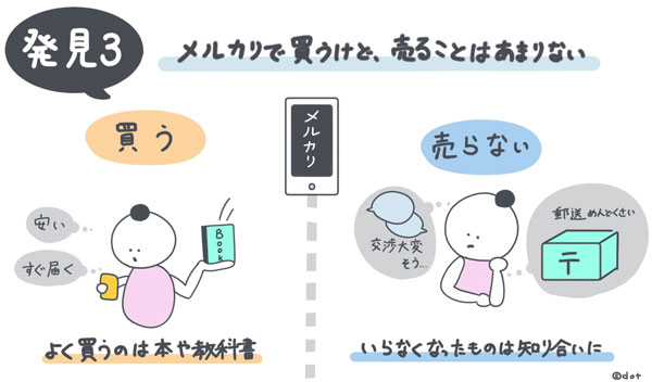 「教科書はメルカリで買います。安いし届くのが早いので。いらなくなったものは友達にあげます。めんどうなので売ろうとは思わないです。売るためのコツがいったり、値下げ交渉されたり大変そうだなって」
