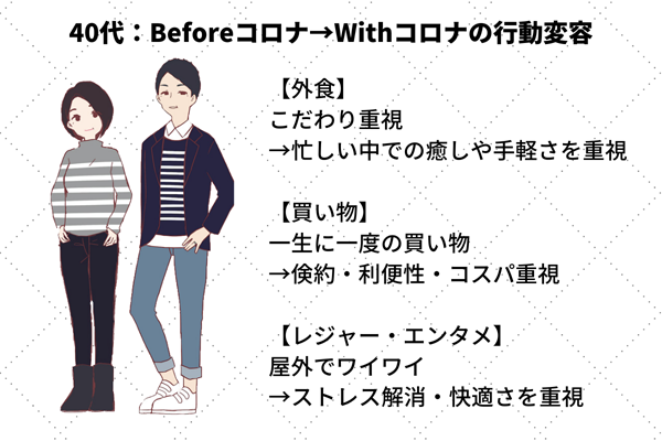 以上の結果を踏まえて、40代のペルソナイメージと行動変化を下図に示しました。
