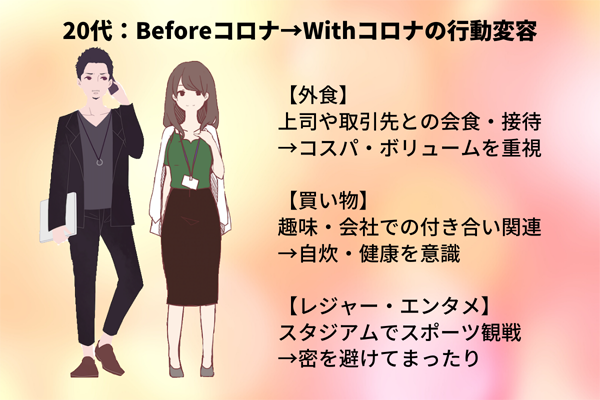 以上の結果を踏まえて、20代のペルソナイメージと行動変化を下図に示しました。