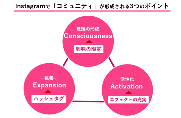 まとめると、Instagramで「コミュニティ」が形成されるポイントは、下記の3つとなります。