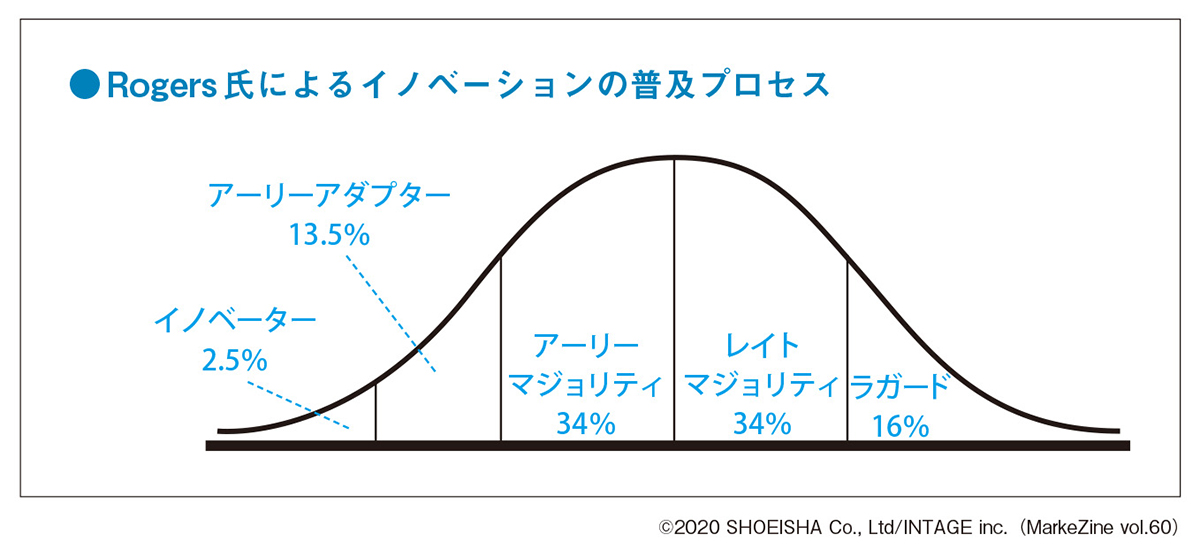 TFTKは、現在でもマーケティングで広く活用されている、社会学者のエヴェリット・ロジャース(Everett M.Rogers)氏が1960年代に提唱した「イノベーションの普及」の理論をベースに構築されたモデルである(図表2)。