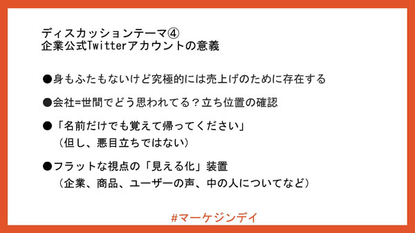 向山:では最後に、一番根本的な部分ともいえる企業の公式Twitterアカウントの存在意義についてうかがえればと思います。企業によっても大きく異なる部分ですよね。