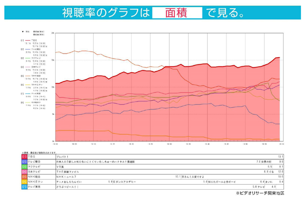以上の習慣化を促す5つの法則に対し、番組制作にはどのような共通点があるのだろうか。まず水野氏は、視聴率について意外な視点を明かした。それは、「視聴率のグラフは線ではなく、面積で見る」こと。そもそも視聴率は、視聴者の数と視聴時間の長さという、2つのファクターで成り立っている。水野氏は、番組に熱中してもらうための骨子や構成をしっかりと作り、視聴者1人ひとりの視聴時間を延ばす方法を取ってきた。すると、視聴が習慣化して番組のファンとなり、番組は継続してベースの視聴率を持っている状態になる。