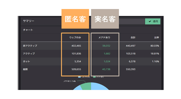 「SATORI」には、自社で活用しながら組織を大きくしてきたノウハウがたくさん詰まっているという。他のMAツールと違う強みは、実名客だけでなく匿名客もデータベース化できる点だ。