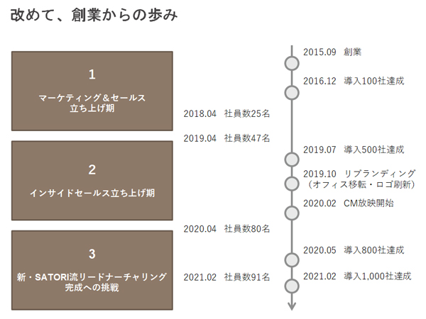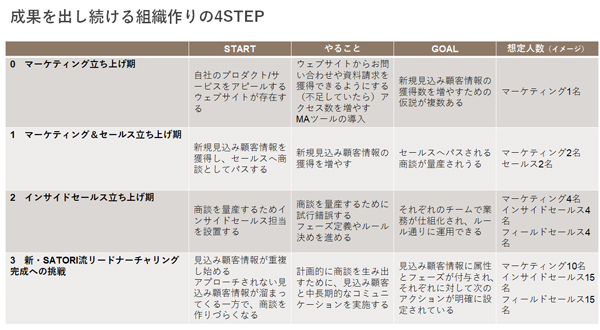 このとき、同社の成長を促したのがMAツールの存在だった。Webサイトで獲得した新規見込み顧客情報をMAツールにもれなく蓄積することで、その後のマーケティングやセールス施策の資産としていた。同社がマーケティング・セールス組織を年々大きくできた理由の一つには、マーケティング組織を作り上げる段階から自社のMAツールである「SATORI」を活用していたことがとても大きいという。