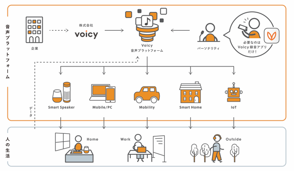 創業時からイメージしていたのは、いずれ「皆が当たり前のように声を使う世界」が来るだろう、ということです。スマートスピーカーを声で操るように、たとえばモビリティサービスの利用も声でできるようになる。そうした状況を見越して直近で掲げているのは、Voicyがボイスメディアのプラットフォームになることです。