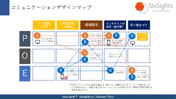 このプロセスにPOEマトリックスを作り、施策を漏れなくダブりなく俯瞰します。この作業は決してすべて施策化することではありません。抜けがないかを確認するためです。