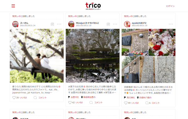 現在は、JALから旬なテーマの投げかけやキャンペーン企画などで、積極的にコミュニティの活性化を促しています。毎月、「2021年のチャレンジ」などテーマを決め投稿を募集し、優秀な投稿を表彰しています。2021年3月のテーマは「#春色」、投稿は1,400件を超えました。賞品は次のJALの旅で使ってもらえるようにJALマイルを付与しています。