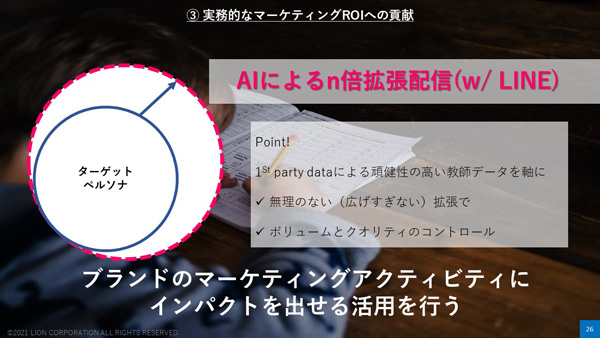Li-flagで解像度を高く捉えられるとしても、「全体量のボリュームがなければ、当然ブランドのマーケティングアクティビティに活用できない」という比留間氏。生活用品のような低価格かつ低関与の商材は、100人に宣伝をしても効果は薄い。そこでライオンがPOCとして果敢に取り組んでいるのが、データの拡張だ。