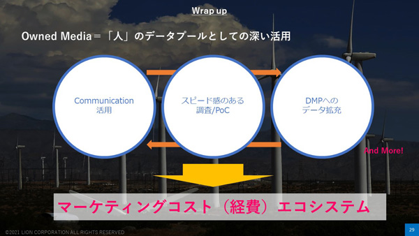 自社で新しいサービスや商品ができたときに会員組織を持つオウンドメディアがあることで、スピード感のあるアンケート調査やPOCを実行でき、時間コストがかなり削減できるという。