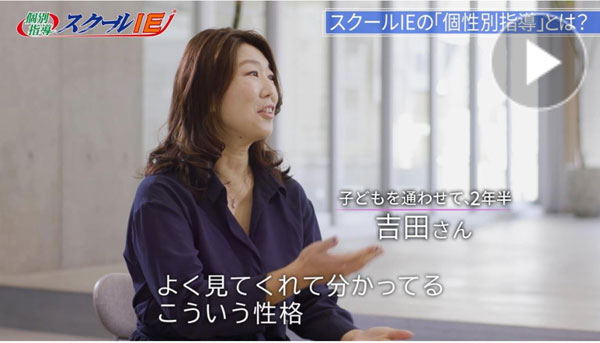 一方WebCMでは、実際にスクールIEに子どもを通わせているお母さんたちを集めて座談会を開催。スクールIEのどこが優れているのか、子どもにどんな変化があったのかなど生の声を引き出して編集した。座談会に出てもらうメンバーの人選から、かなりこだわって綿密に制作したという。