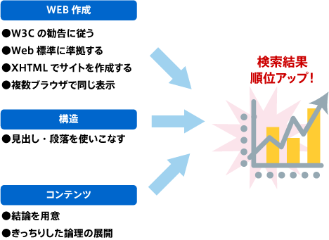 とはいうものの(4)も半分は正しい。実はSEOを意識しなくてもSEO効果が出るWeb作成法はある。だが、日本ではまったく支持されていない。無視されているのである。W3Cの勧告に従うとか、Web標準に準拠するとか、XHTMLでサイトを作成するとか。これだけでも効果はバツグンである。