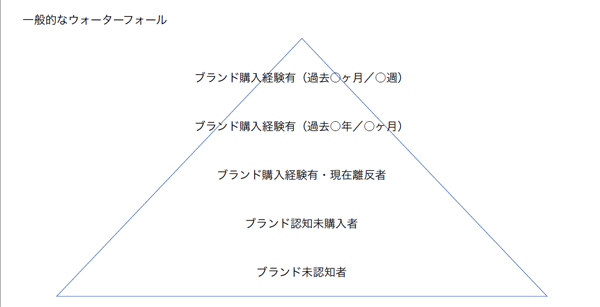 玉井:この図の下から順に「ブランドを知らない人たち」「ブランドを知っているけど買っていない人たち」「ブランドを知っていて、買ったことはあるけど買うのをやめてしまった人たち」「ブランドを知っていて、今も買っているけど買う頻度が高くない人たち」「ブランドを知っていて今も買っているし、買う頻度も高い人たち」となります。