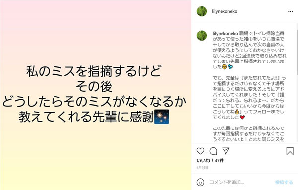 - ・コメントには「自分もそう/そうだった」「こうしてみたらいいかも」など、優しいコメントが多い。