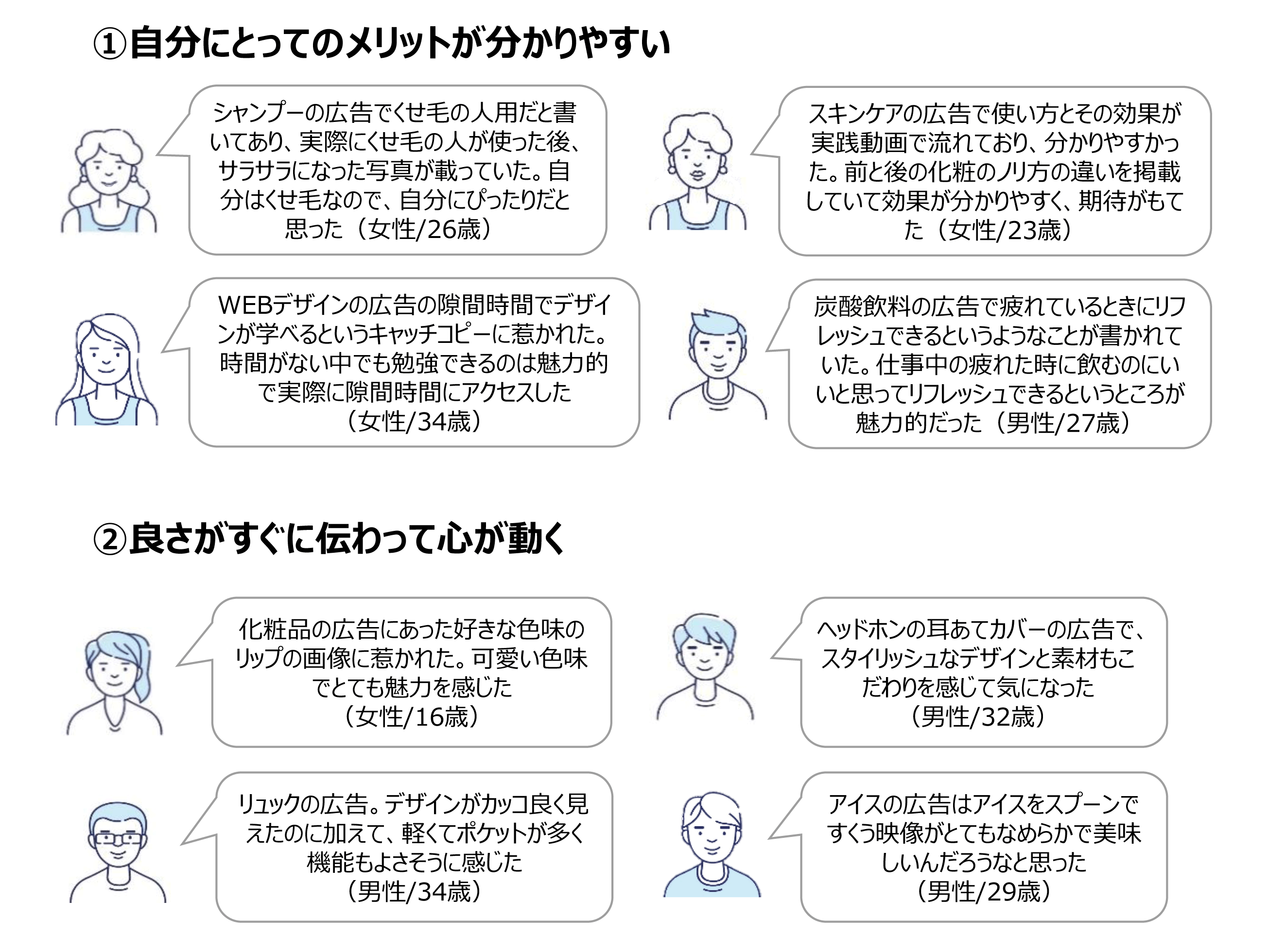 - 商品の良さをメーカーが語るのではなく、消費者が語っているような表現にする