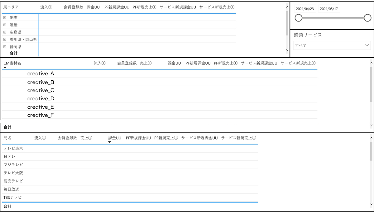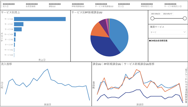 武井:大きく3つのことが実現できました。1つ目はテレビCMをネット広告と同じような指標と粒度で測定・分析できるようになったことです。今回の取り組みでは、TVCMの視聴数(GRP)とWebサイトへの流入数、発生したコンバージョン(CV)、売上(ARPU/ROAS/ROI/LTV)を新規/既存顧客、クリエイティブ別、テレビ番組・枠別の粒度で見える化することに成功しました。