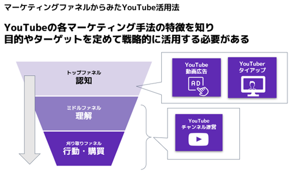 こうした3つの手法の使い分けについて石島氏は「(認知の観点で)まずはYouTube動画広告、次にタイアップがお薦め。理解させるフェーズでYouTubeのチャンネル運営を行うとよい」という。それぞれのフェーズに合わせた使い方が重要だ。