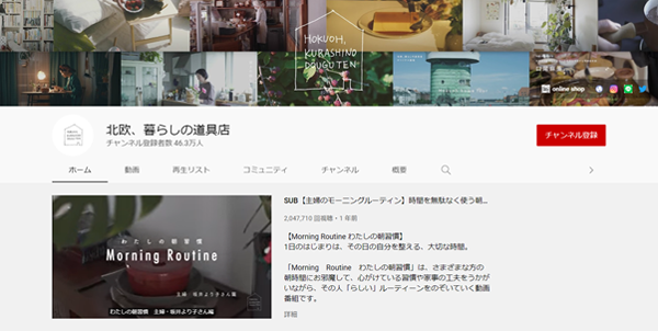 生活道具やファッション小物、洋服のEC販売をしている北欧、暮らしの道具店の公式YouTubeアカウントでは、ターゲットユーザーである30~40代女性に合わせた動画コンテンツを多く発信しています。
