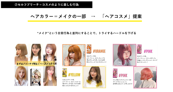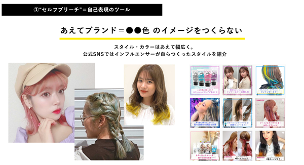 「用丸さんが解説していた通り、自分が好きなものを自由に発信することに抵抗がない人は増えています。私たちのブランドも『自分の好きなものは自分で決めて表現していこう』という思想を持っているので、その思想をキーにセルフブリーチ剤を自己表現のツールとして打ち出していくことにしました」(猿田氏)