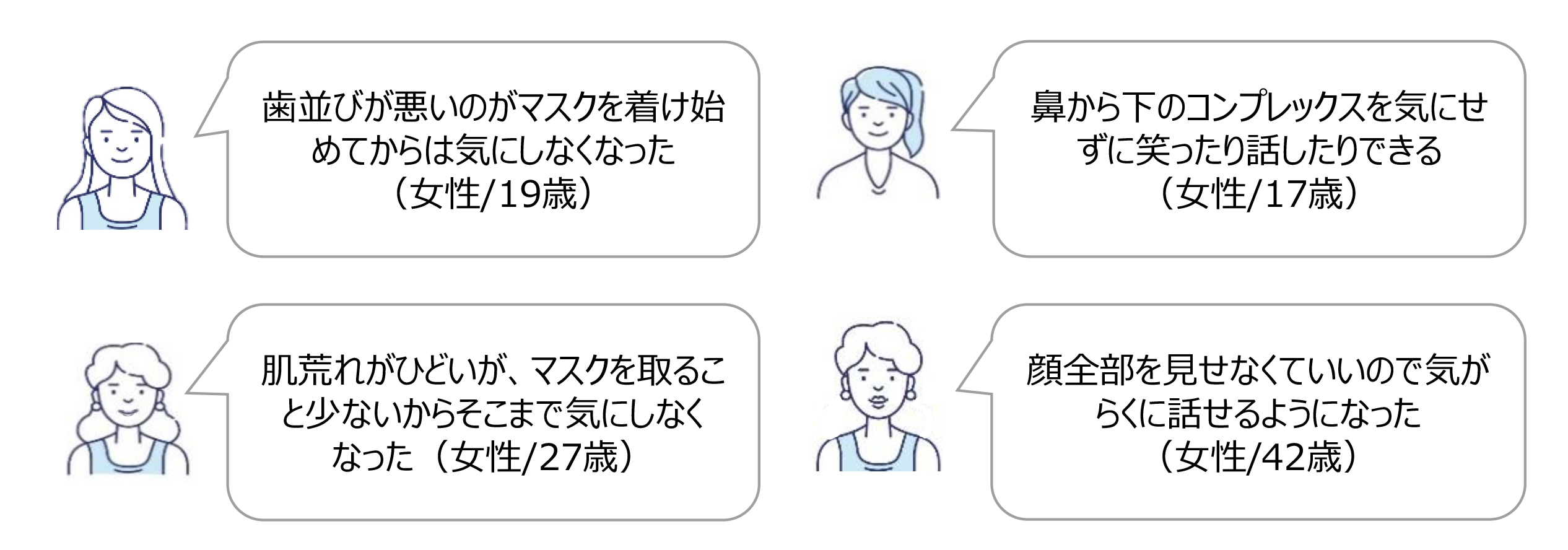 マスク着用における意識の変化を自由回答で聞いた質問では、上記の結果を裏付けるように、以下のような声も聞かれていました。