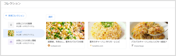 また、Googleのコレクションという機能にも対応しており、右上のリストボタンをクリックすると、気になったレシピを集めることもできます。