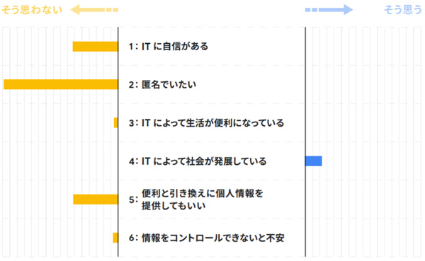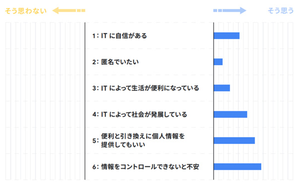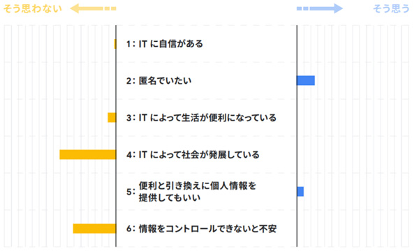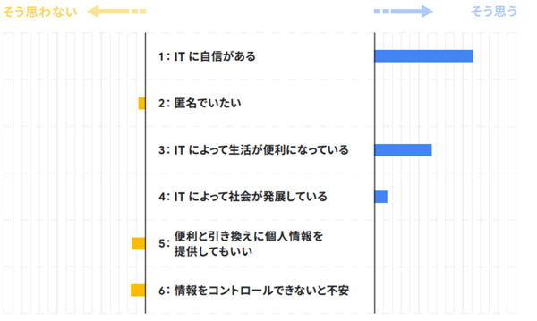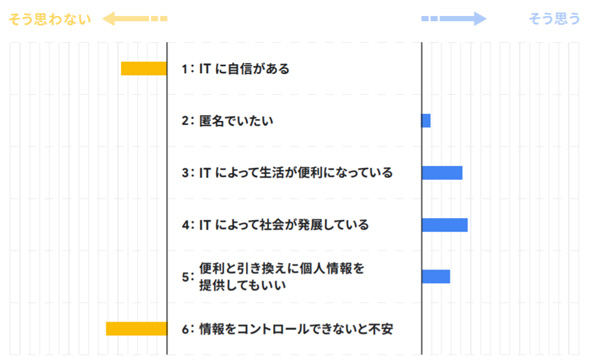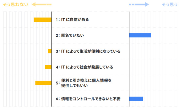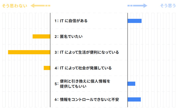 朴:はい。1つ目の「ウェルネス型」は、ITに対して最も好意的なクラスタで、利便性の高いITを積極的に取り入れて利用することで生活が豊かになる、と考えている集団です。注目したいのは、因子5(便利と引き換えに個人情報を提供してもいい)、因子6(情報をコントロールできないと不安)で、自分の情報を提示することに慎重でありながらも、個人情報と引き換えに便利なサービスを受けることには前向きな姿勢を示している点です。このことから、ウェルネス型は、現在のITサービスのエコシステムに理解があり、ITに対する知識も豊富であると言えます。