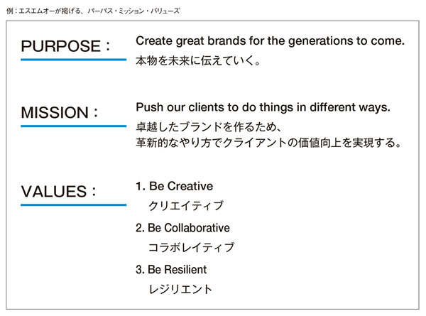 パーパスには様々な形があり、1つのスタイルに縛られない点も特徴です。「ミッション・ビジョン・バリューズ」は、3つセットで語られるケースが多いですが、パーパスにはこのような体系を規定する考えがありません。その企業に合った形で柔軟に導入することが優先されるべき事項であり、パーパスに合わせて既存の理念体系をすべて見直す場合もあれば、既存の理念体系に新たにパーパスを加える場合もあるでしょう。
