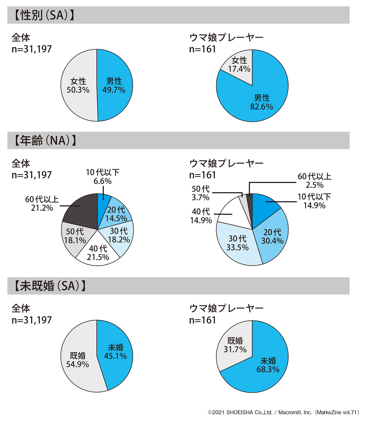 以上より、「ウマ娘」はあまりお金に余裕がない未婚若年層が主にプレイしているものと考えられる。
