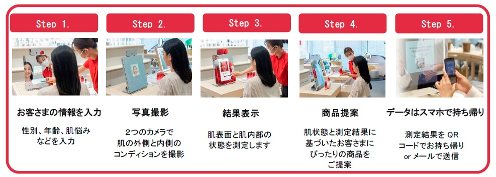 国内約50店舗のほか、「SHISEIDO GLOBALFLAGSHIP STORE」でも提供中。年齢、性別、肌の色やタイプに関わらず利用できることから、2021年7月1日から順次グローバルでもこのツールをフックにした顧客カウンセリングを展開しているという。