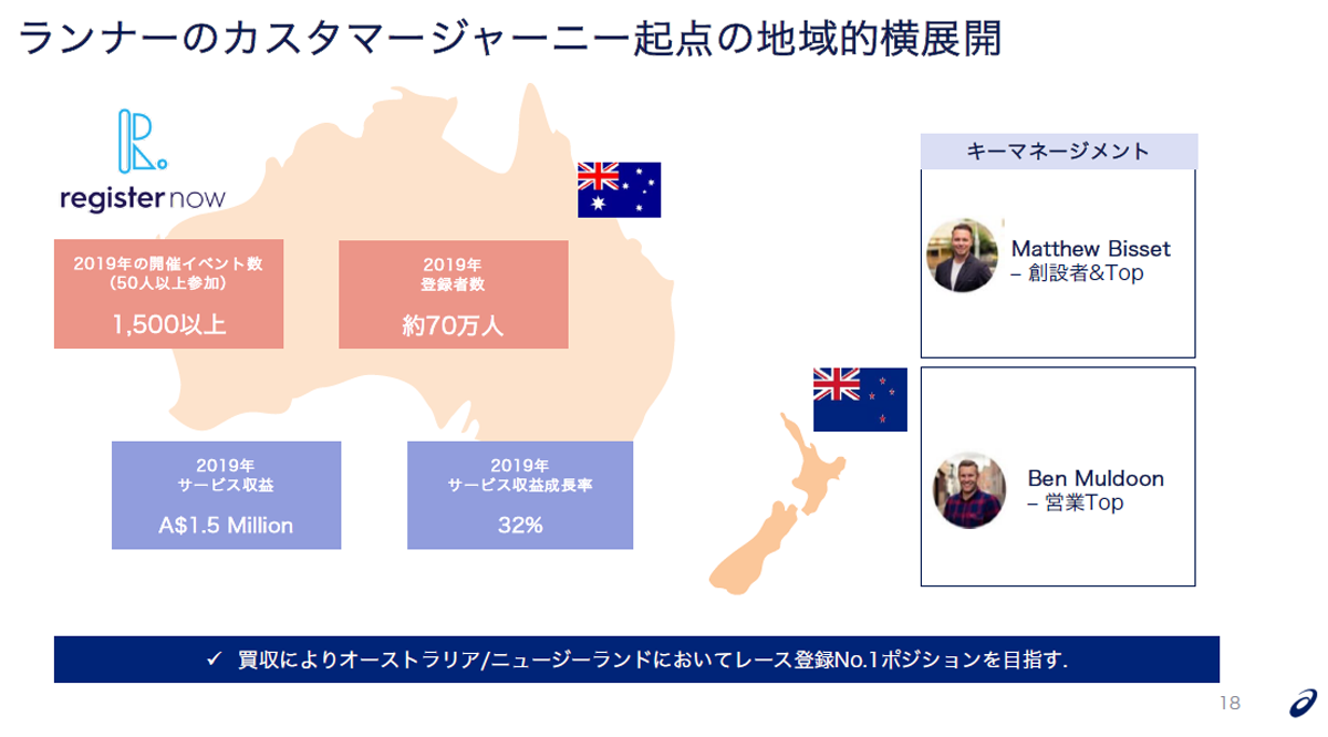 さらに2021年11月16日(火)、アシックスはこれら2つのサービスに加えオーストラリアでシェアナンバーワンを占めるレース登録サービス「Register Now」の買収合意を取り付けた。